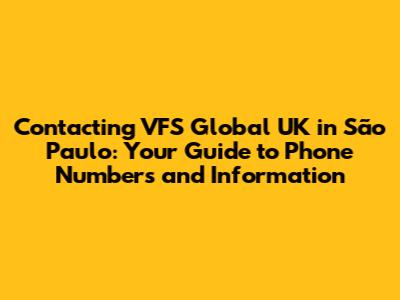 • What is the phone number for VFS Global UK in São Paulo? The exact phone number can vary, so it's critical to check the official VFS Global website for the most current information. Look for the number specifically for UK visa inquiries. This number is your gateway to customer support, where you can get help with applications, appointments, and other issues.