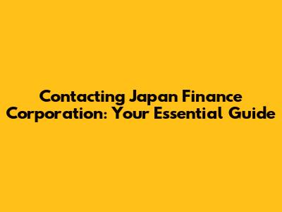 Contacting Japan Finance Corporation: Your Guide