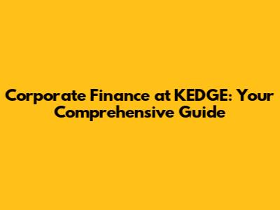 Corporate Finance At KEDGE: Your Comprehensive Guide