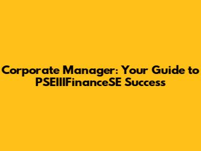 Corporate Manager: Your Guide To PSEIIIFinanceSE Success