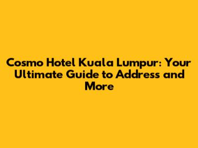 Finding the Cosmo Hotel Kuala Lumpur: The Address and Location