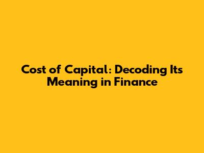 Cost Of Capital: Decoding Its Meaning In Finance