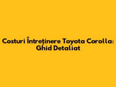 Costuri Întreținere Toyota Corolla: Ghid Detaliat