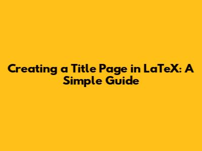 Create A Title Page In LaTeX: A Simple Guide