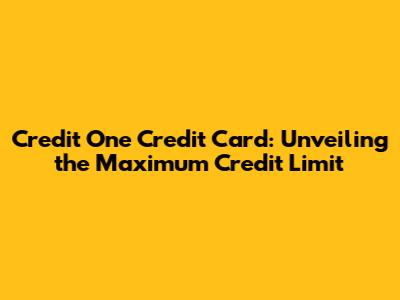 Credit One Credit Card: Unveiling The Maximum Credit Limit