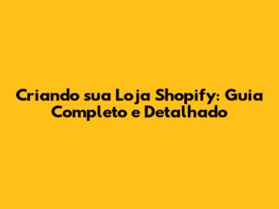 Criando Sua Loja Shopify: Guia Completo E Detalhado