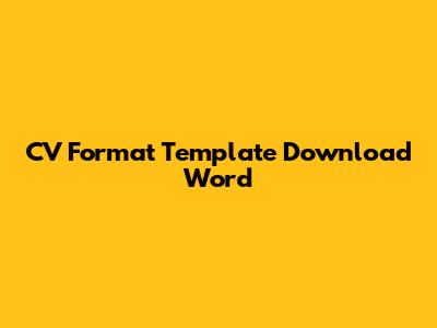 CV Format Template: Free Word Downloads