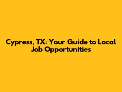 Cypress, TX: Your Guide To Local Job Opportunities