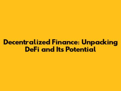 Decentralized Finance: What You Need To Know