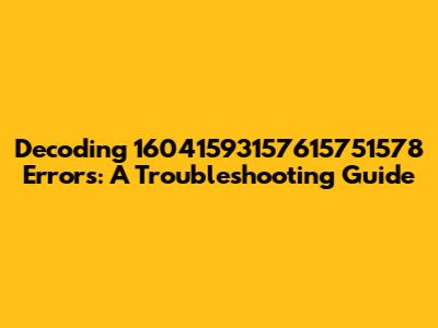 Decoding 16041593157615751578 Errors: A Troubleshooting Guide