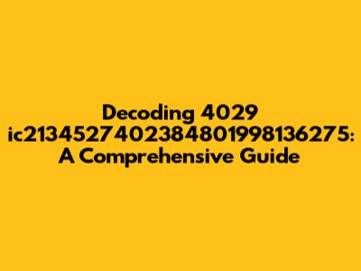 Decoding 4029 Ic2134527402384801998136275: A Comprehensive Guide