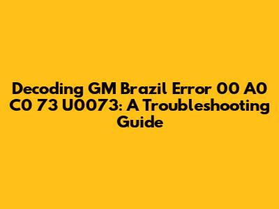 Decoding GM Brazil Error 00 A0 C0 73 U0073: A Troubleshooting Guide