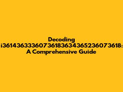 Decoding I36143633360736183634365236073618: A Comprehensive Guide