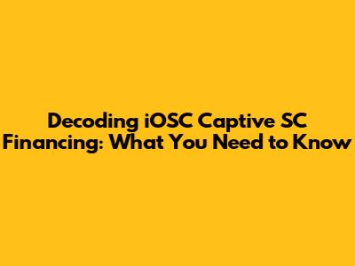 Let's dive into iOSC Captive SC financing. If you've ever scratched your head wondering what this term means, you're in the right place. This article breaks down the essentials of iOSC Captive SC financing, explaining its nuances in simple terms. We'll explore what it entails, its benefits, and how it operates, ensuring you grasp the core concepts without getting lost in financial jargon. Whether you're an entrepreneur, a finance professional, or just someone curious about the world of finance, understanding iOSC Captive SC financing can provide valuable insights into modern financial strategies. Stick with us as we unpack this topic and make it crystal clear.