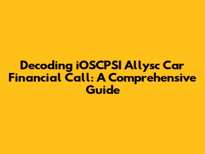 Decoding IOSCPSI Allysc Car Financial Call: A Comprehensive Guide