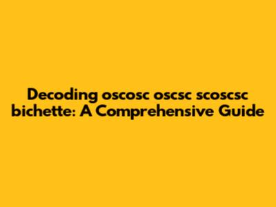 We could also try breaking it down into smaller parts. "Oscosc," "scoscsc," and "bichette" each have their own unique structures. "Oscosc" could be a combination of "OS" (operating system?) and "COSC" (a Swiss chronometer certification?). "Scoscsc" looks like a mirrored version of "oscosc," which might imply some kind of symmetry or reversal. And "bichette"⊠well, that's a French term of endearment, meaning "little doe" or "sweetie." So, what does that tell us? Probably nothing concrete, but it's fun to think about.