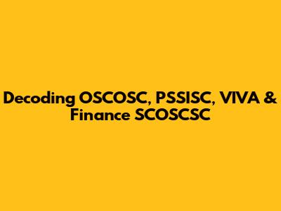 Decoding OSCOSC, PSSISC, VIVA & Finance SCOSCSC