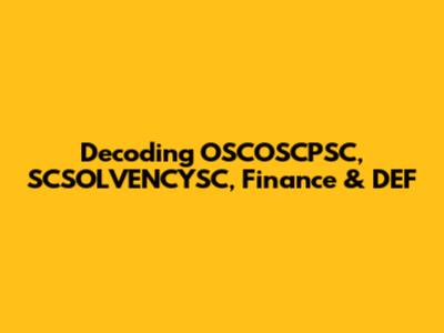 Decoding OSCOSCPSC, SCSOLVENCYSC, Finance & DEF
