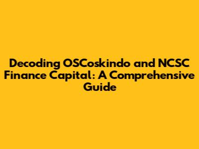 Decoding OSCoskindo And NCSC Finance Capital: A Comprehensive Guide