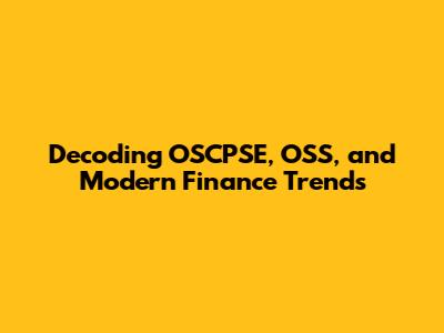 Decoding OSCPSE, OSS, And Modern Finance Trends