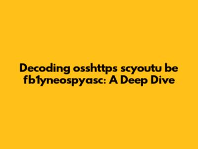 Alright guys, let's dive into the mysterious world of "osshttps scyoutu be fb1yneospyasc." What does this jumble of characters even mean? Well, it looks like a URL or some kind of identifier related to online video content, specifically something involving osshttps, scyoutu, and a unique string fb1yneospyasc. In this article, we're going to break it down, explore potential meanings, and understand how such identifiers are used on the internet. Buckle up, it's going to be a fun ride!