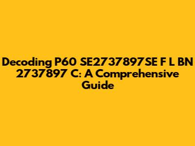 Decoding P60 SE2737897SE F L BN 2737897 C: A Guide