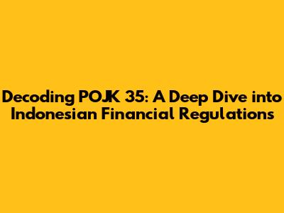 Decoding POJK 35: A Deep Dive Into Indonesian Financial Regulations