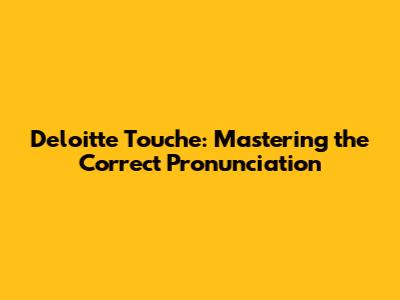 Hey there, language enthusiasts! Ever found yourself stumbling over the name Deloitte Touche? It's a common issue, and honestly, no judgment here! It's one of those names that can trip you up if you're not in the know. But fear not, because we're diving deep into the proper pronunciation of Deloitte Touche, breaking it down step by step, and giving you the confidence to say it flawlessly. Whether you're a business student, a job seeker, or just someone who wants to sound smart, knowing how to pronounce this name correctly is a small but important victory. So, let's get started, shall we?