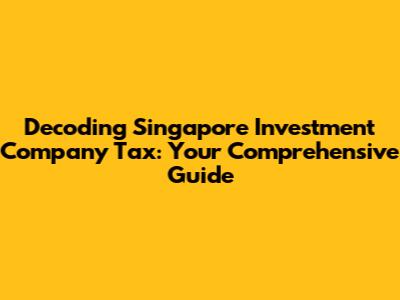 Hey everyone, let's dive into the fascinating world of Singapore investment company tax! Understanding the tax landscape is super important if you're thinking about investing in Singapore or already have investments there. This guide aims to break down everything you need to know, from the basics to some of the nitty-gritty details, making it easier for you to navigate the complexities. We'll cover what constitutes an investment company, the different tax rates, available incentives, and how to stay compliant. Get ready to have your burning questions answered and gain a solid understanding of how taxes impact your investments in the Lion City. So, grab a coffee, sit back, and let's get started. Singapore's robust economy and investor-friendly environment make it a popular destination for investments. However, navigating the tax regulations can seem daunting. This article aims to provide a clear and concise overview of the Singapore investment company tax regime.