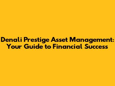 Denali Prestige Asset Management: Your Guide To Financial Success