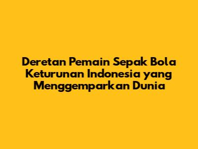 Guys, Indonesia, sebagai negara kepulauan yang kaya akan talenta, tak hanya dikenal dengan keindahan alamnya, tapi juga punya sejarah panjang dalam dunia sepak bola. Nah, ngomongin soal sepak bola Indonesia, kita nggak bisa lepas dari sosok-sosok pemain yang berdarah campuran alias keturunan Indonesia. Mereka ini nggak cuma membanggakan nama Indonesia di kancah internasional, tapi juga menunjukkan bahwa darah Indonesia bisa mengalir di mana saja, bahkan di lapangan hijau Eropa yang super kompetitif. Artikel ini bakal ngebahas secara mendalam tentang siapa saja pemain sepak bola keturunan Indonesia yang udah berhasil menorehkan prestasi gemilang dan membuat bangga kita semua.