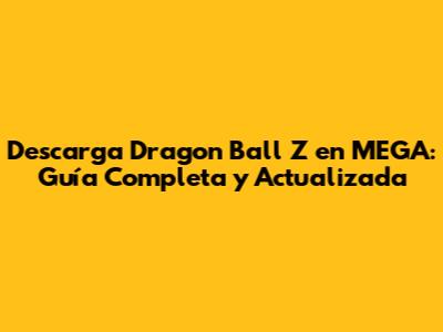 ¡Hola, fans de Dragon Ball Z! ¿Están listos para revivir las épicas batallas de Goku, Vegeta y compañía? Si buscas descargar Dragon Ball Z en MEGA, has llegado al lugar correcto. En esta guía completa y actualizada, te mostraremos todo lo que necesitas saber para disfrutar de esta legendaria serie en la plataforma MEGA de manera fácil y segura. Olvídate de buscar enlaces rotos o archivos corruptos, aquí encontrarás la información más precisa y los consejos más útiles para que tu experiencia de descarga sea perfecta. Prepárense para liberar su ki y sumergirse en el mundo de los saiyajin. ¡Comencemos!