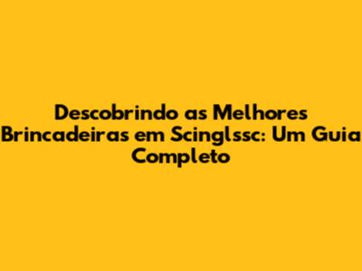 Descobrindo As Melhores Brincadeiras Em Scinglssc: Um Guia Completo