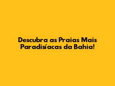 Descubra As Praias Mais Paradisíacas Da Bahia!