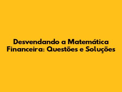 Desvendando A Matemática Financeira: Questões E Soluções