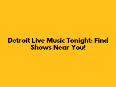 Detroit Live Music Tonight: Find Shows Near You!