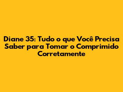 Diane 35: Guia Completo Para Tomar O Comprimido Corretamente
