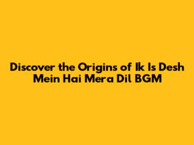 Unraveling the Mystery: Where Does 'Ik Is Desh Mein Hai Mera Dil' BGM Originate?