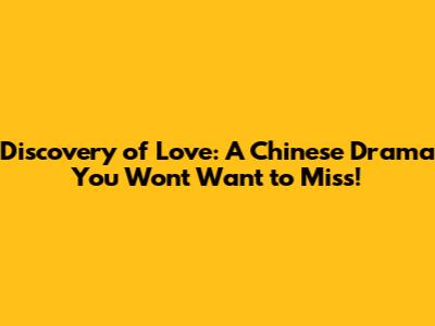 Why 'Discovery of Love' is Your Next Must-Watch Chinese Drama