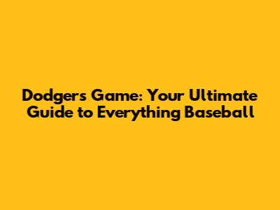 Dodgers Game: Everything You Need To Know