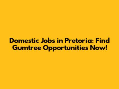 Domestic Jobs Pretoria: Find Gumtree Opportunities Now!