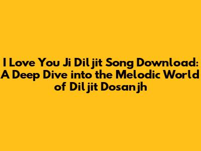Download I Love You Ji By Diljit: A Melodic Journey