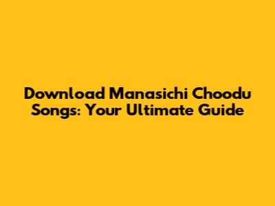 Download Manasichi Choodu Songs: Your Ultimate Guide