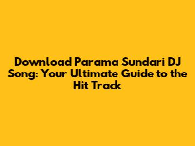 Download Parama Sundari DJ Song: A Complete Guide