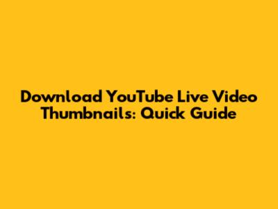 Download YouTube Live Video Thumbnails: Quick Guide