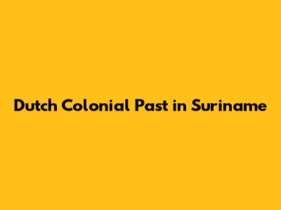 Dutch Colonial Past In Suriname
