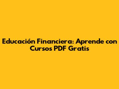 Educación Financiera: Aprende Con Cursos PDF Gratis