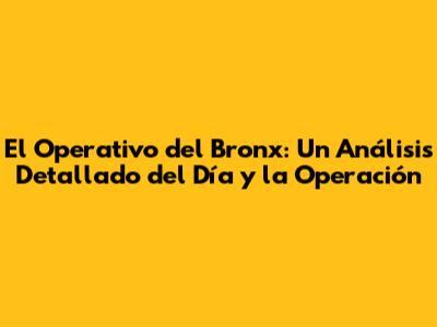 El Operativo Del Bronx: Un Análisis Detallado Del Día Y La Operación