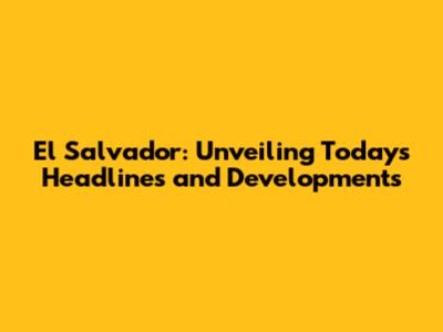 El Salvador: Breaking News And Developments