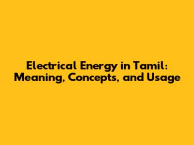Electrical Energy In Tamil: Meaning, Concepts, And Usage